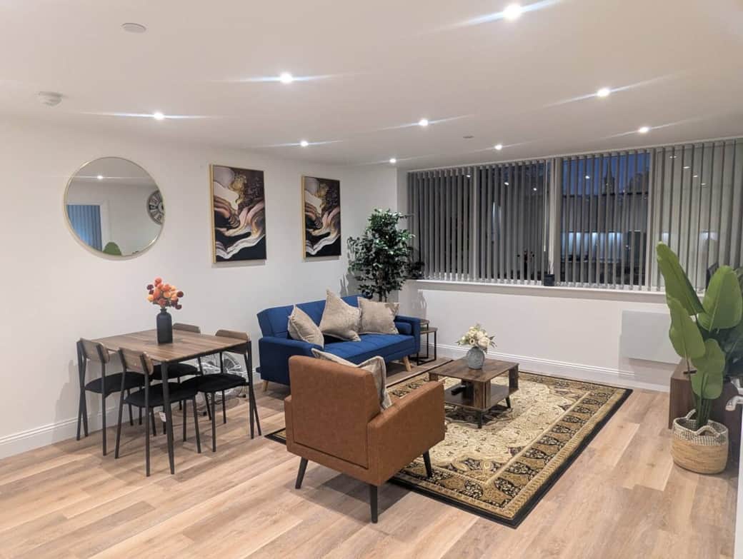 Bright, open-plan living with large windows and contemporary décor